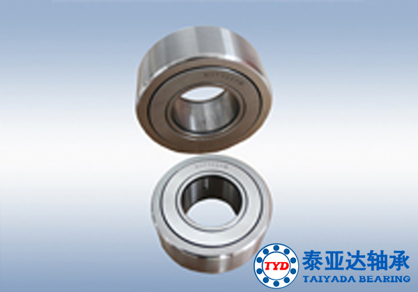 曲線滾輪軸承由一根作為滾子組內滾道的螺栓及一個厚壁外圈組成,螺栓軸的台肩及壓在螺栓上的端麵擋圈組成了外圈沿兩個側麵方向的引導麵。當曲線滾輪在平滾道或凸輪盤上運動時,由於外圈的彈性變形,滾輪的內應力加大。因此應用於此種工作情況下的額定負荷選擇作為曲線滾輪一欄。